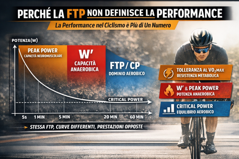 Tuttavia, ridurre il modello prestativo del ciclista alla sola FTP significa adottare una visione riduzionista e fisiologicamente incompleta. La performance reale è il risultato di un sistema complesso in cui interagiscono variabili aerobiche, anaerobiche, neuromuscolari e metaboliche.